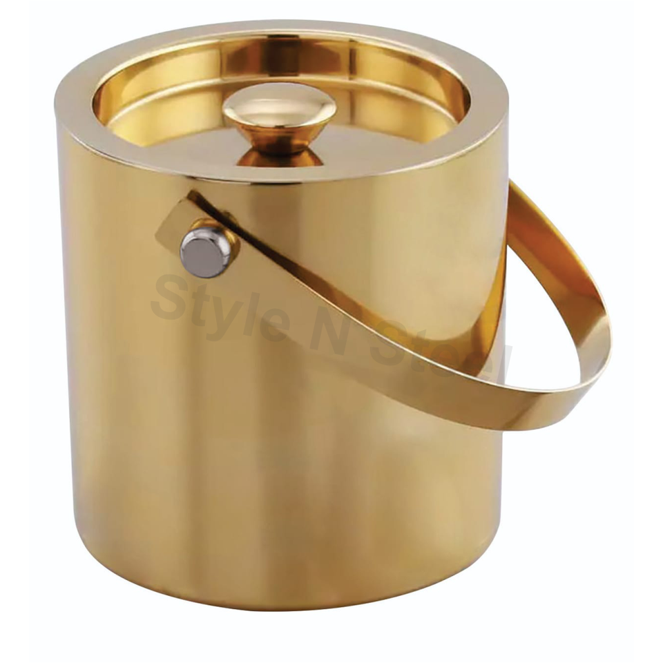 Name:premium double wall ice bucket in Gold color with a lid