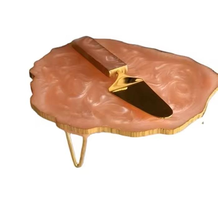 Elegant Classic Resin Metal Tripod Cake Stand Agate Look Three-Leg Dessert Display Tray Wedding Parties Home Decor Tool