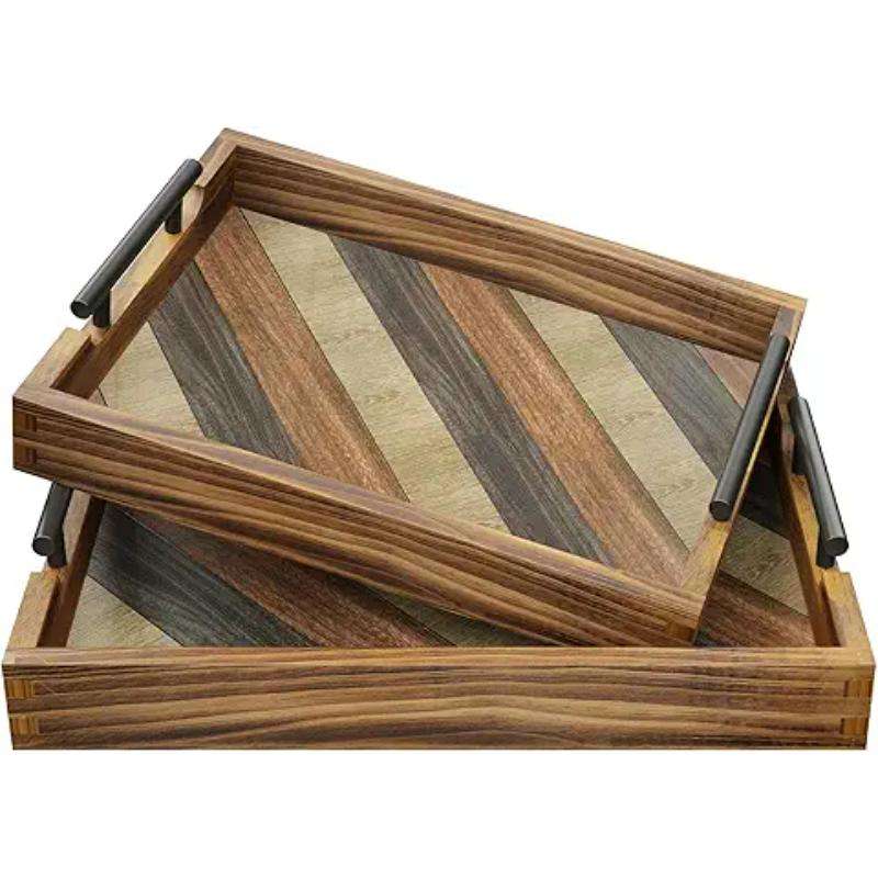 Elegant Classic Wooden Serving Tray with Durable Handles and Vintage-Styled Detailing for Home Dining Decorative Food Serving