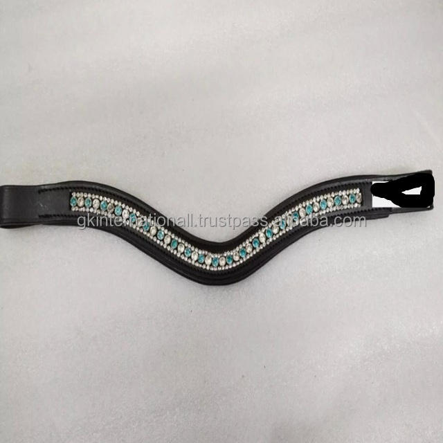 Elegant Colorful Lacquer Crystals Leather Horse brow band Luxury Affordable with back open sticky tape at loop bling brow band