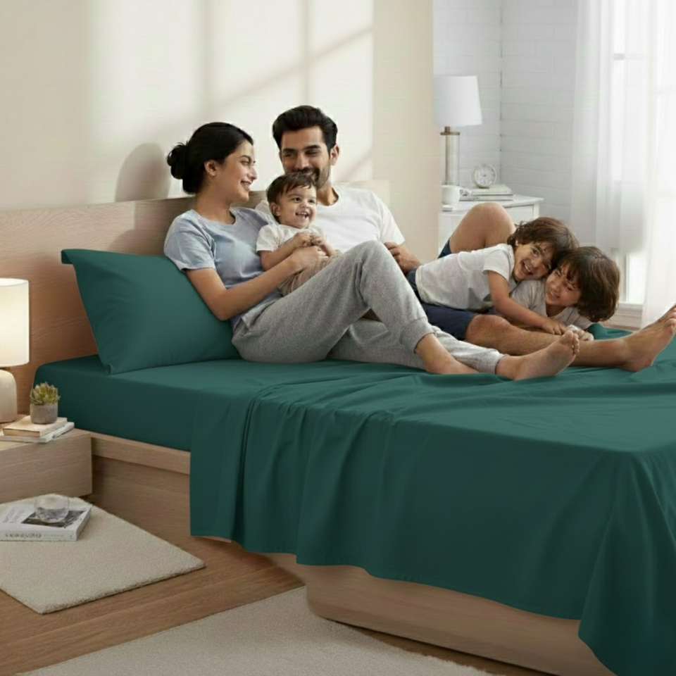 Elegant Comfort Teal Color Microfiber Double Bed Sheet Set | Soft Breathable Fabric | Hotel Style Bedding | 2026 Premium Touch