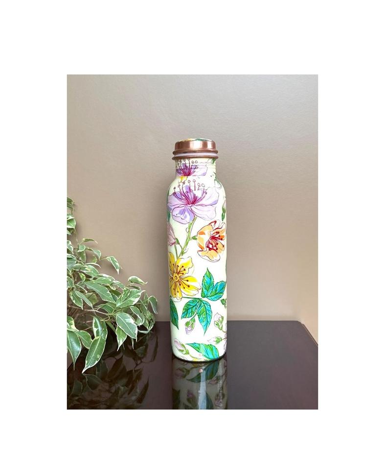 Elegant Copper Metal Water Bottle with Handcrafted Detailing Axiom Home Accents Ayurvedic Properties for Daily Wellness