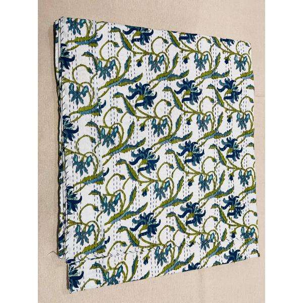 Elegant Cotton Kantha Quilt Displaying Heritage Block Print Design With Soft Breathable Fabric Crafted For Peaceful Rest