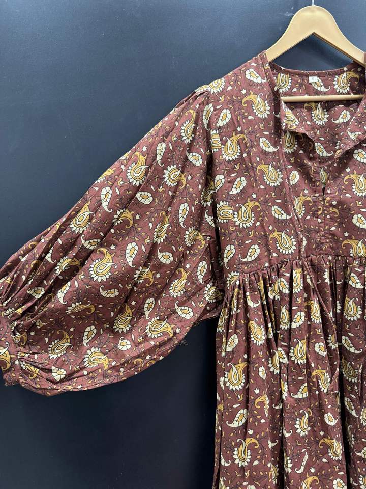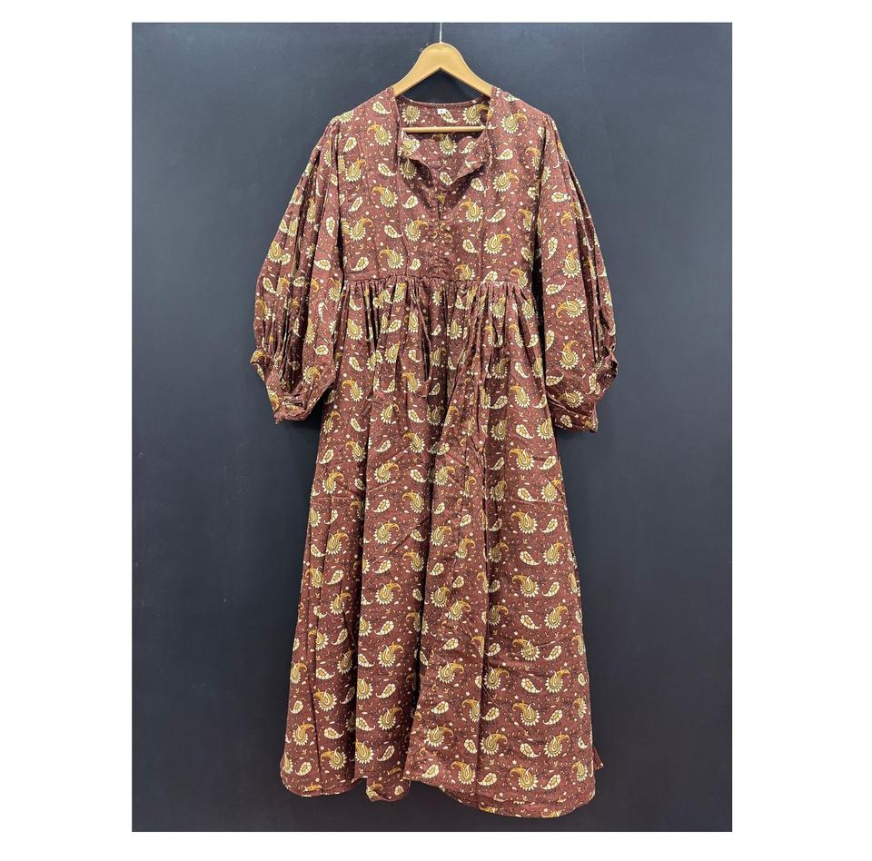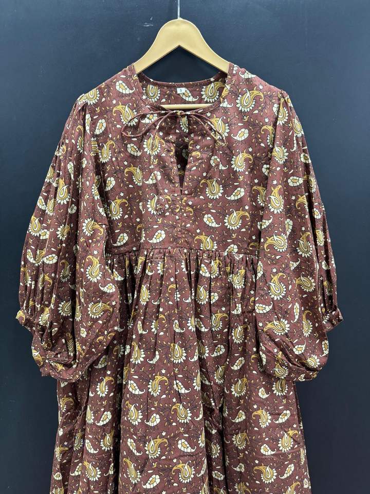 Elegant Casual Cotton Printed Midi Dress for Women Lightweight Stylish Natural A-Line Silhouette Bulk Quantity Available