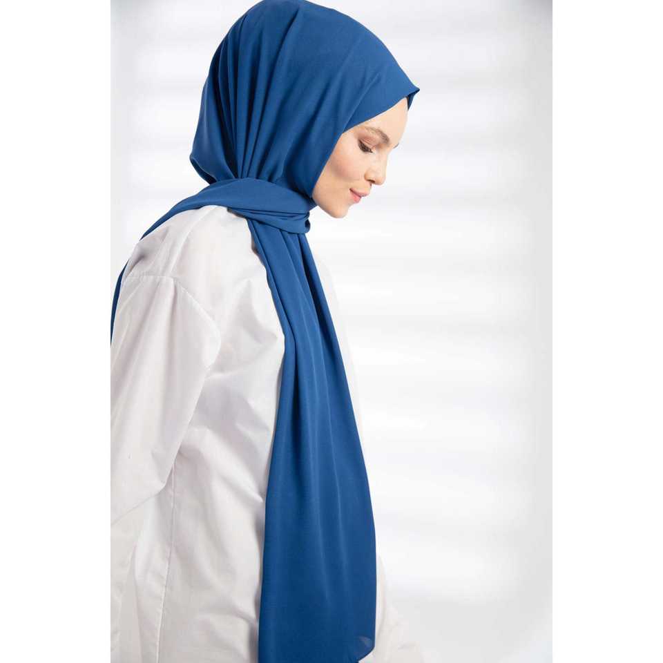 Elegant Crepe Shawl Indigo Plain Dyed Long 100% Polyester Women's Knitted Scarf