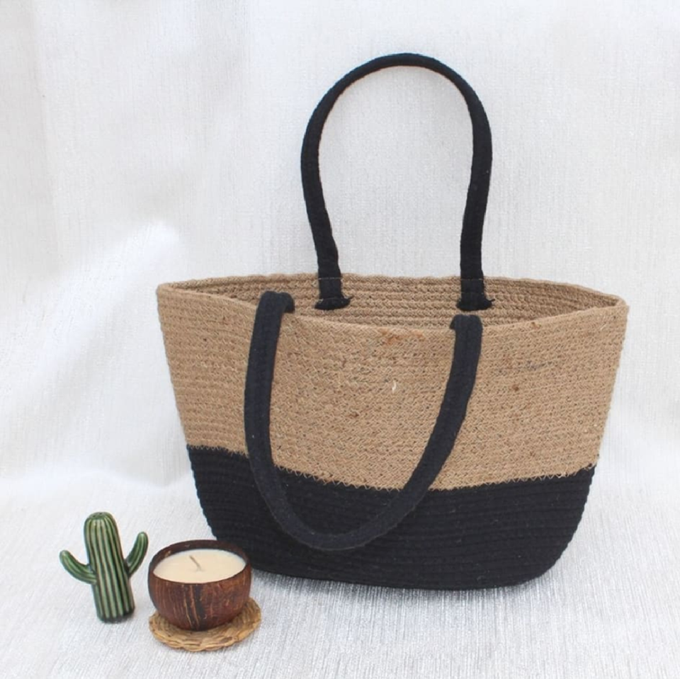Elegant Crocheted Jute Tote Bag in Teal with Brown Leather Handles and Tassel Accent at Wholesale-Factory Price