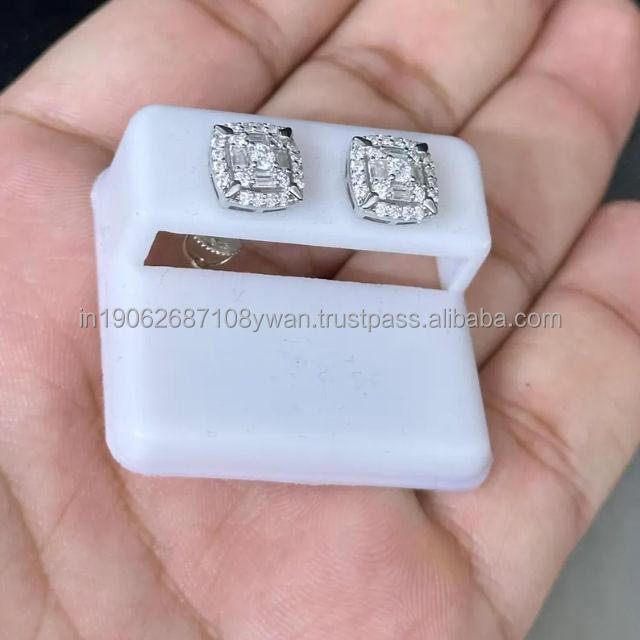 Elegant Cushion Cut Earrings White Gold Plated Square Halo Moissanite Sparkling Wedding Jewelry Luxury Daily Wear Square Stud