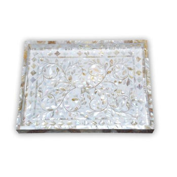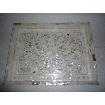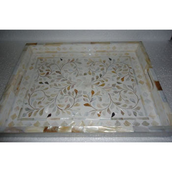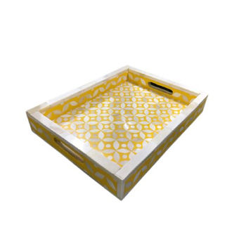 Elegant Customized Yellow Mother of Pearl Serving Tray Large Wooden Food Tray for Home Dinnerware Use From India