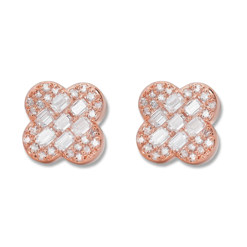 Elegant D Color VVS Diamond Flower Shape Hip Hop Style Stud Earrings 14K Gold Fine Yellow Gold Plated IGI Certified for Gift