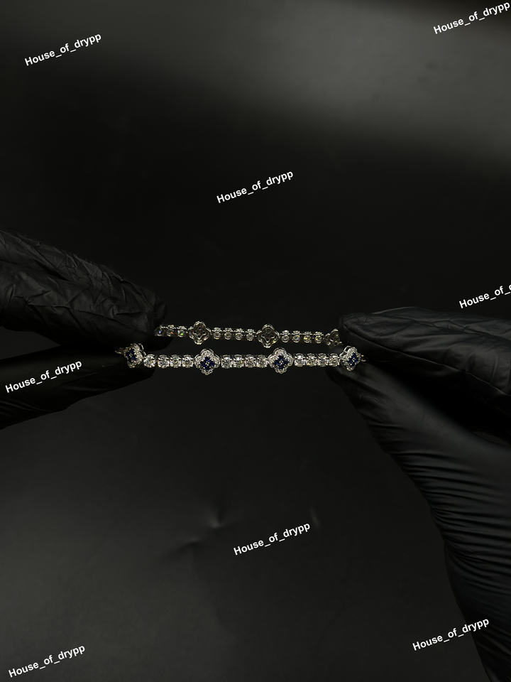 Elegant Dark Blue Stone Tennis Moissnite Diamonds Bracelet Silver Luxury Link Bracelet For Women Party Wear Jewelry