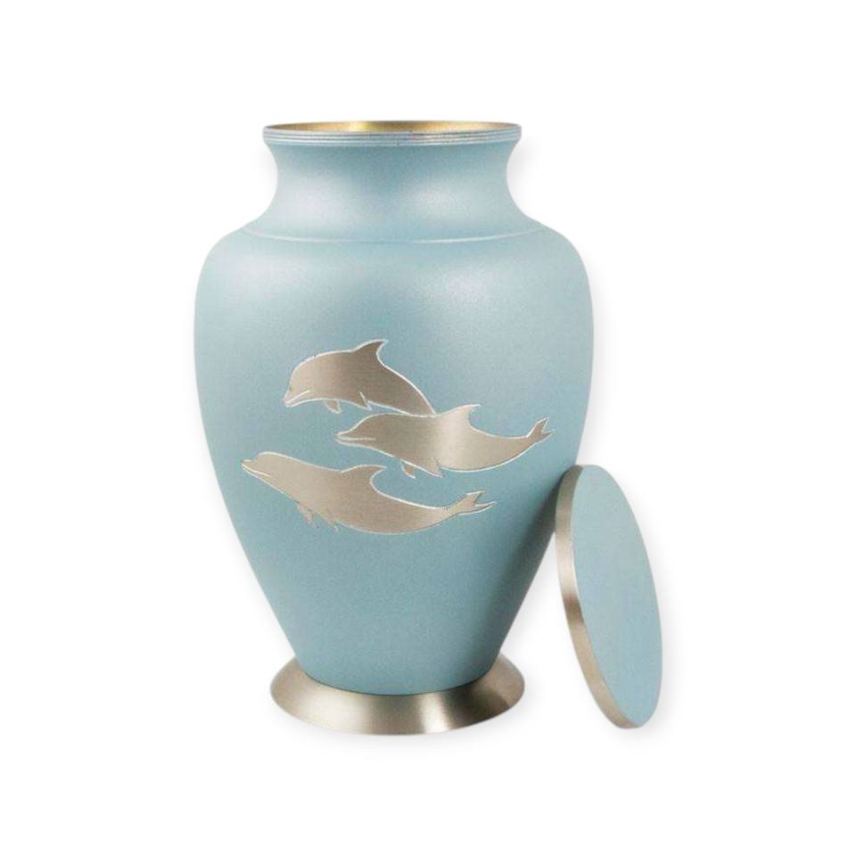 Elegant Dark Purple Metallic Cremation Urn with Black Floral Band for Elegant Memorial Display