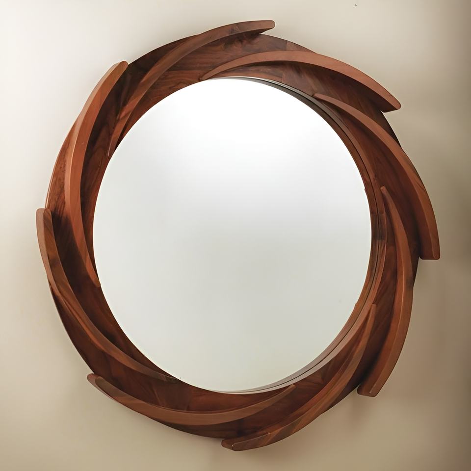 Elegant Decorative Framed Wall Solid Wooden Round Bathroom Mirror with Black Colored Frame