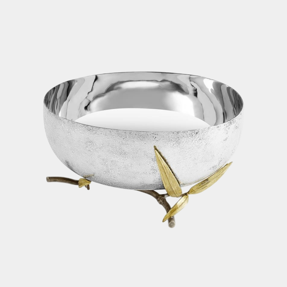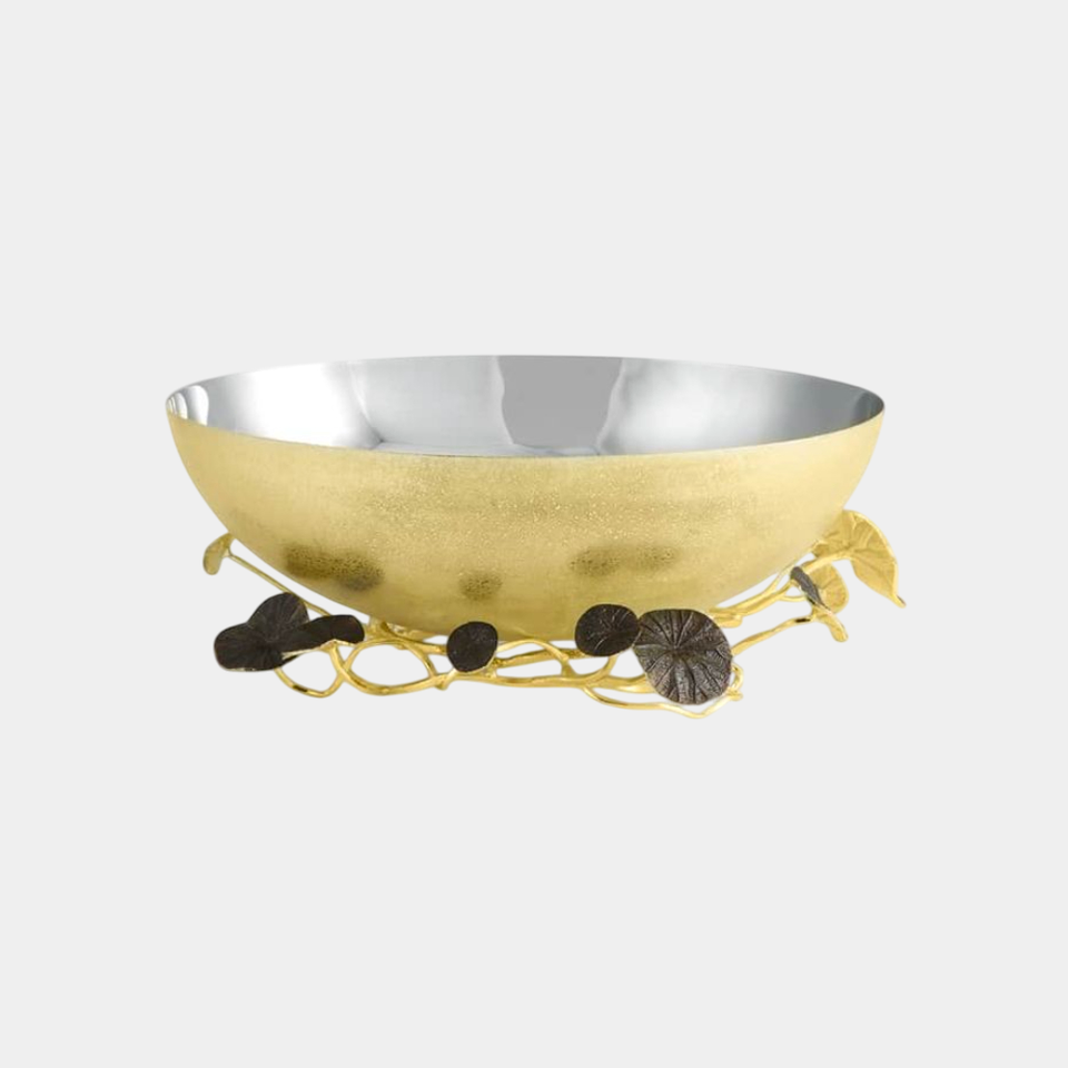 Elegant Decorative Serving Bowl Superior Quality Golden Metal Bowl With Lotus Leaf Design Base For Dining Table Accessory