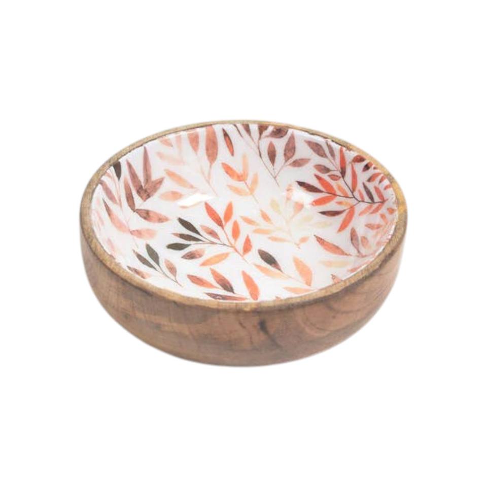 Elegant Decorative Wooden Bowl with Pine Leaf Enamel Pattern for Everyday Kitchen Serving