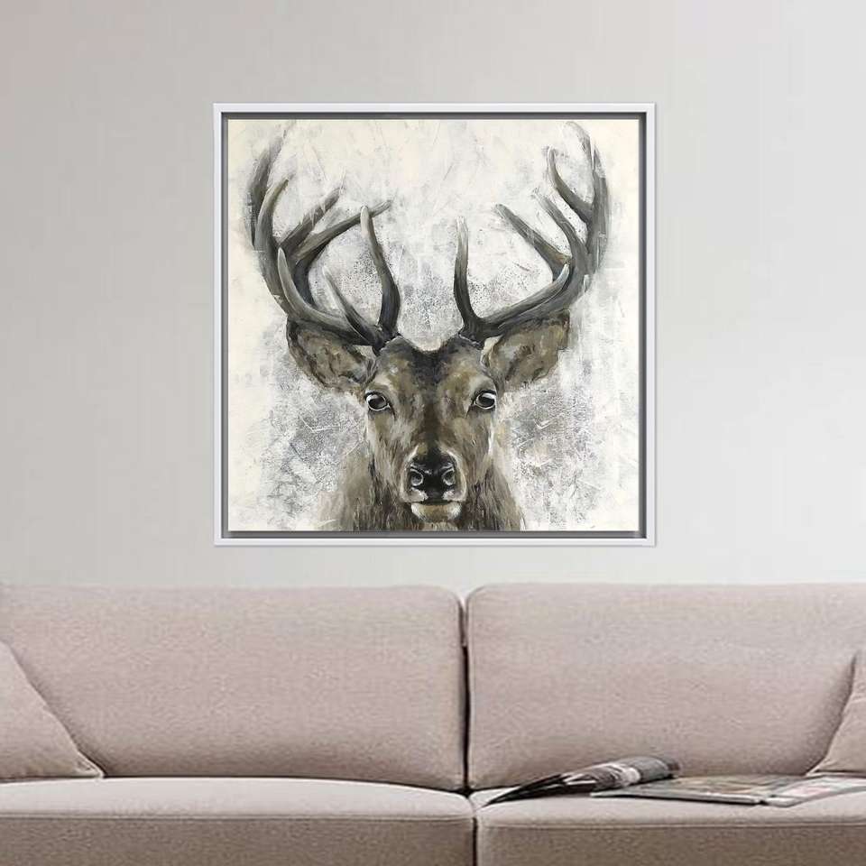 Elegant Deer Canvas Print: Modern Farmhouse Wall Art Decor,White Framed