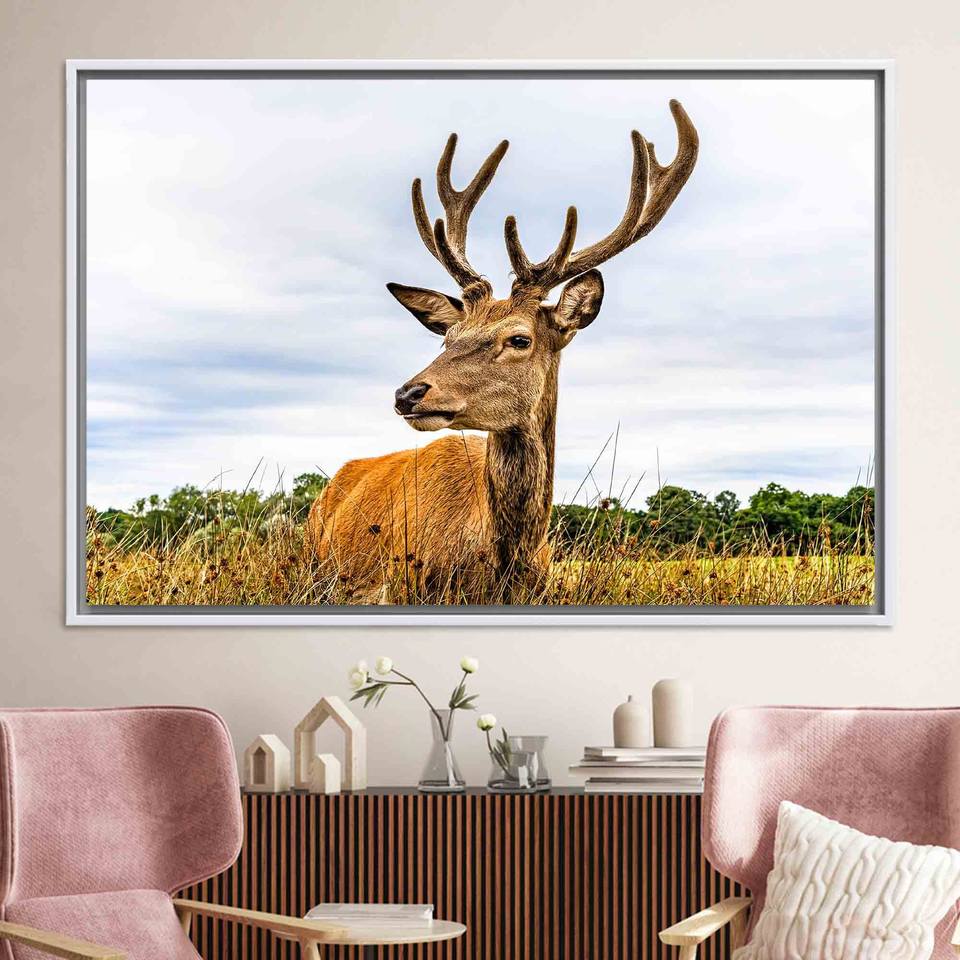 Elegant Deer Canvas Wall Art: Printed Design, Modern Decor,WHITE FRAMED CANVAS