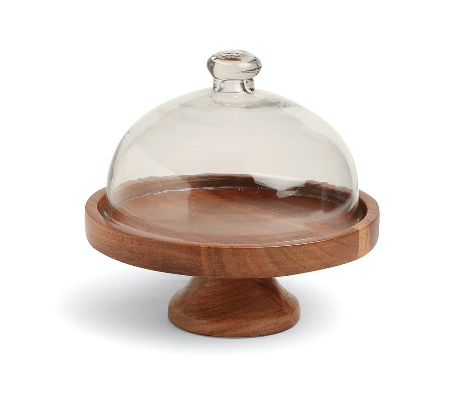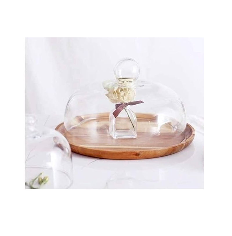 Elegant Demanding Wood Dessert Cake Stand with Glass Dome Wood Butter Plate Party Weddings Best Price