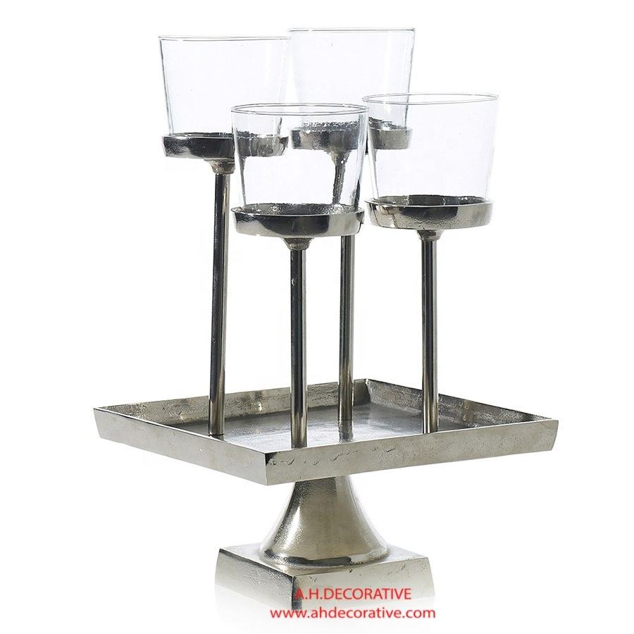 Elegant Design Aluminum Casting Candle Holder for Bedroom Decoration Silver Plated Shiny Table Top Candle Stand