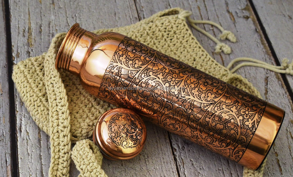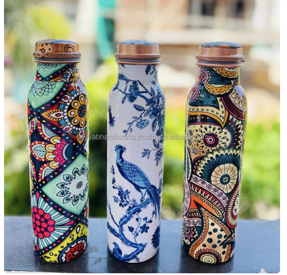 Elegant Design Copper Water Bottle Ayurvedic Best Selling Jointless Printed Copper Water Bottle