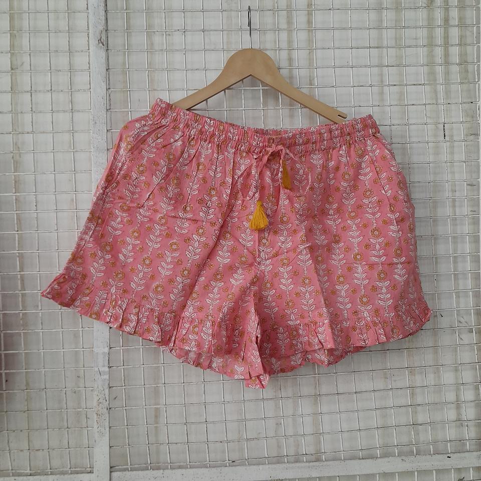 Product Name:Elegant Cotton Block Printed Fabric Pajama Set Frill Design Short