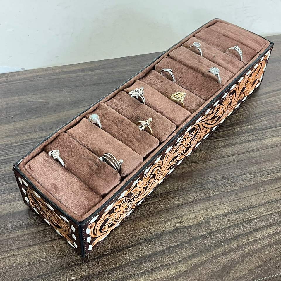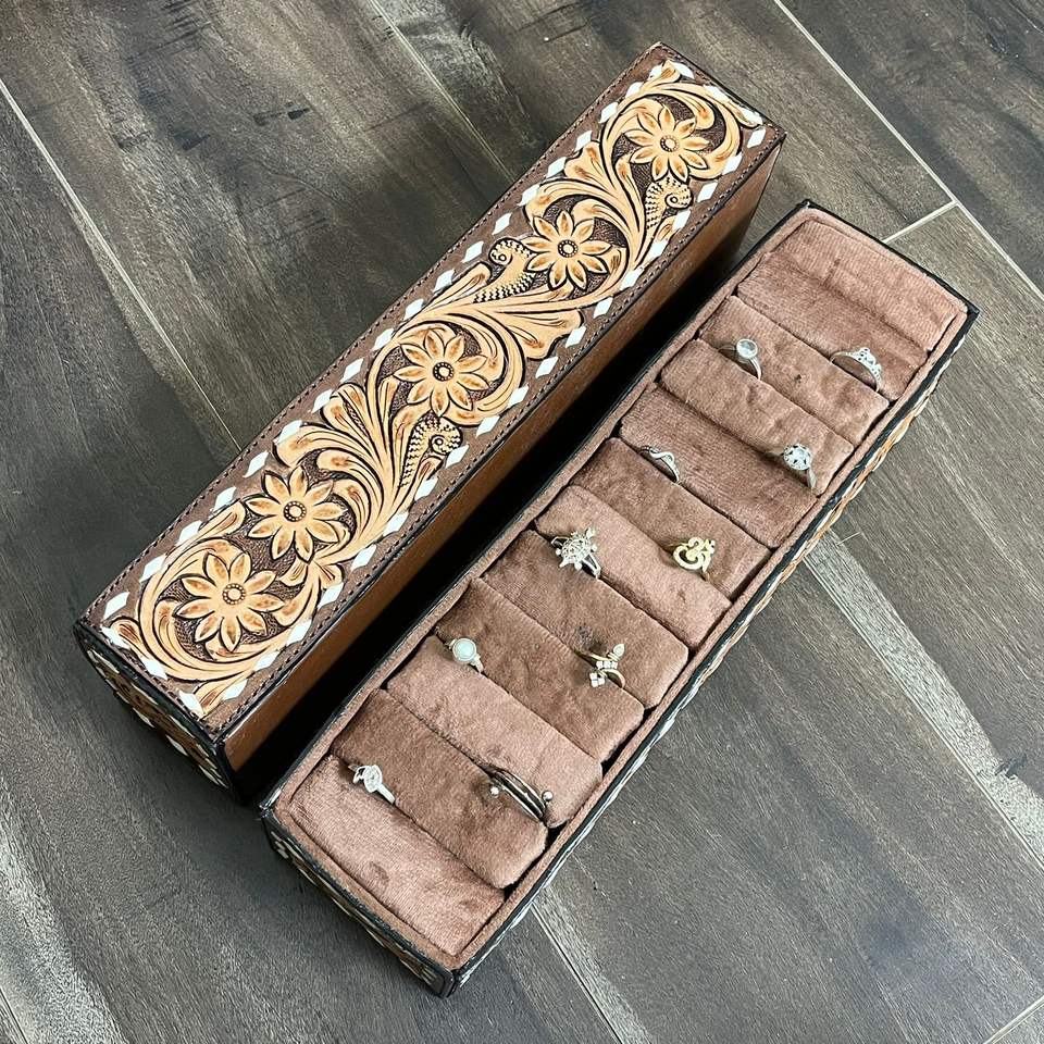 Hand Tooled Genuine Leather Ring Display BoxProduct name