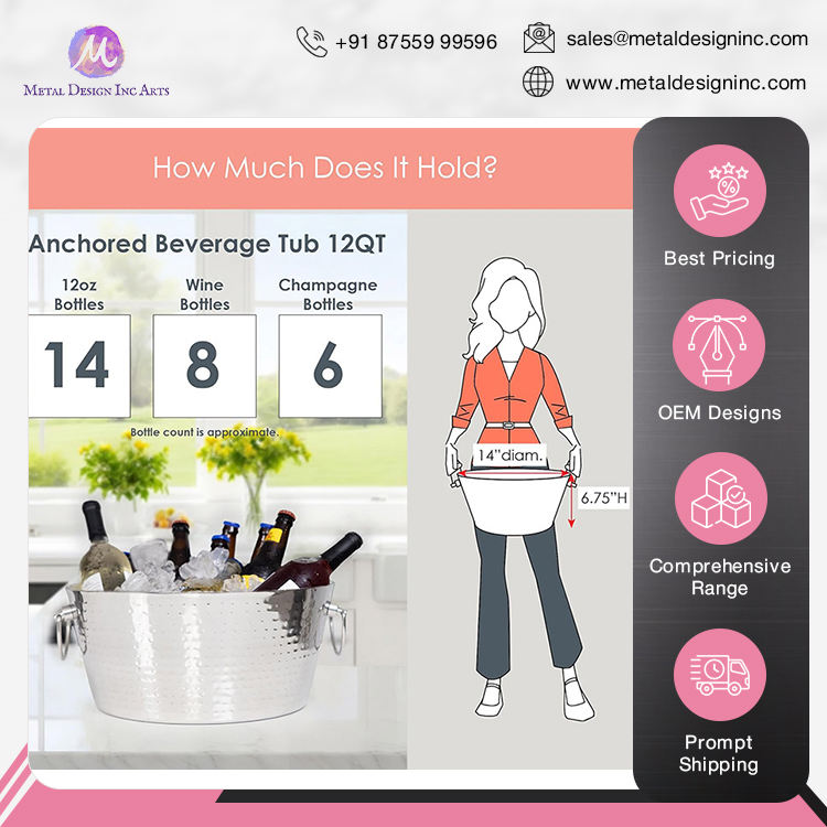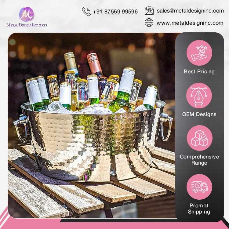 Elegant Design Hot Selling Hammered Stainless Steel Double Walled Beverage Tub at Affordable Market Price for Bulk Purchase