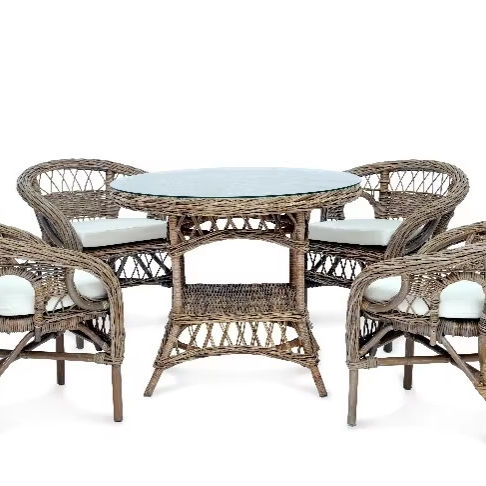 Elegant Design Hot Selling Type MANDALINO KUBU DINING SET Dining Set with Round Table From Indonesia for home furniture