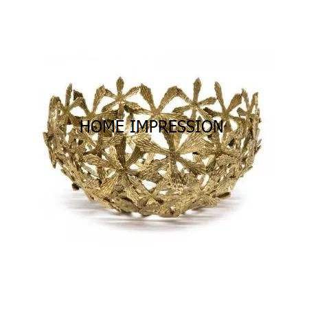 Elegant Design Leaf Large Gold Serving Bowl Prime Quality Metal Material Bowl for Wedding Parties Decorative Serving Bowls