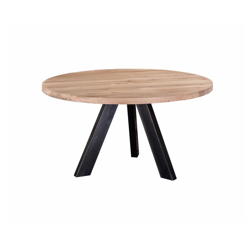 Elegant Design Solid Acacia Wood Round Coffee Table, Centre Table With Black Metal Leg