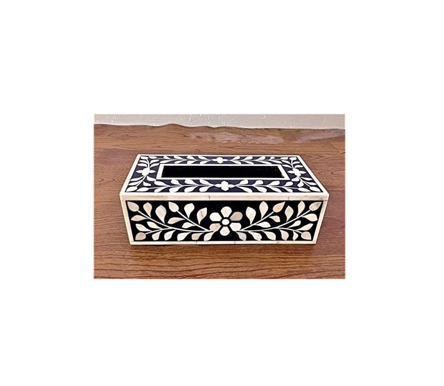 Elegant Designer Bone Inlay Resin Tissue Box For Bathroom Countertop Bedroom Side Table Luxury Interior Decor Accent