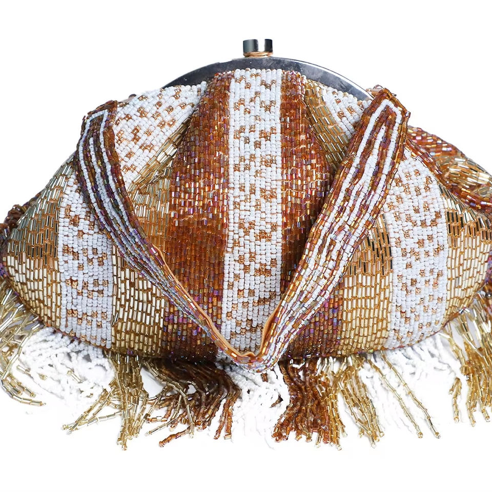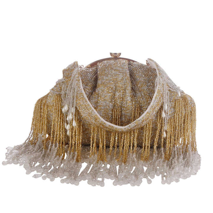 Elegant Designer Evening Clutch Bag Embroidery Pearl Beads for Bridal Wedding Party Women Suede Material Lady Style Made India