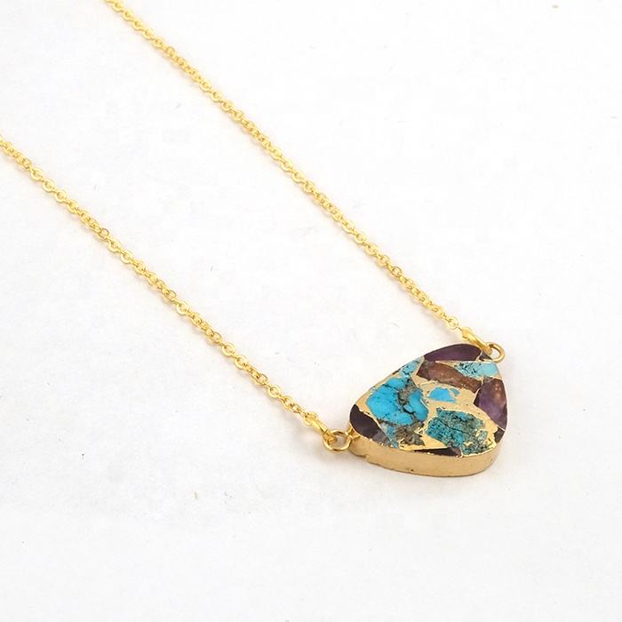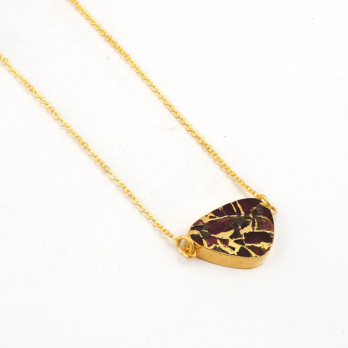 Elegant Designer Link Chain Necklace Ruby Jade Gemstone Pendant Stylish Electroplated Handcrafted Fashion Gift Brass Trendy