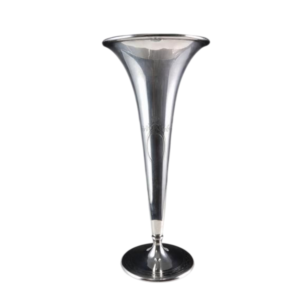 Elegant Designer Silver Aluminum Trumpet Vase Set Modern Leaf Pattern Floor & Table Centerpiece Vases For Wedding & Home Decor