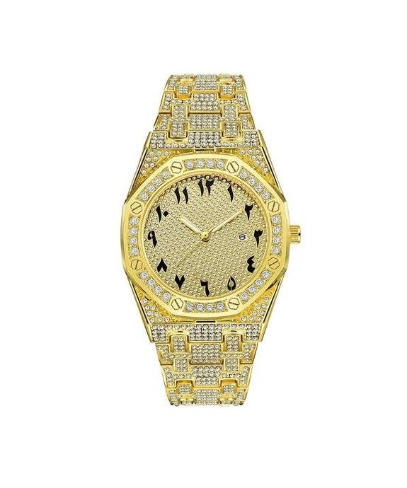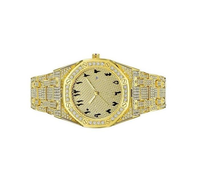 Design:Luxury iced-out round dial with crystal-studded
