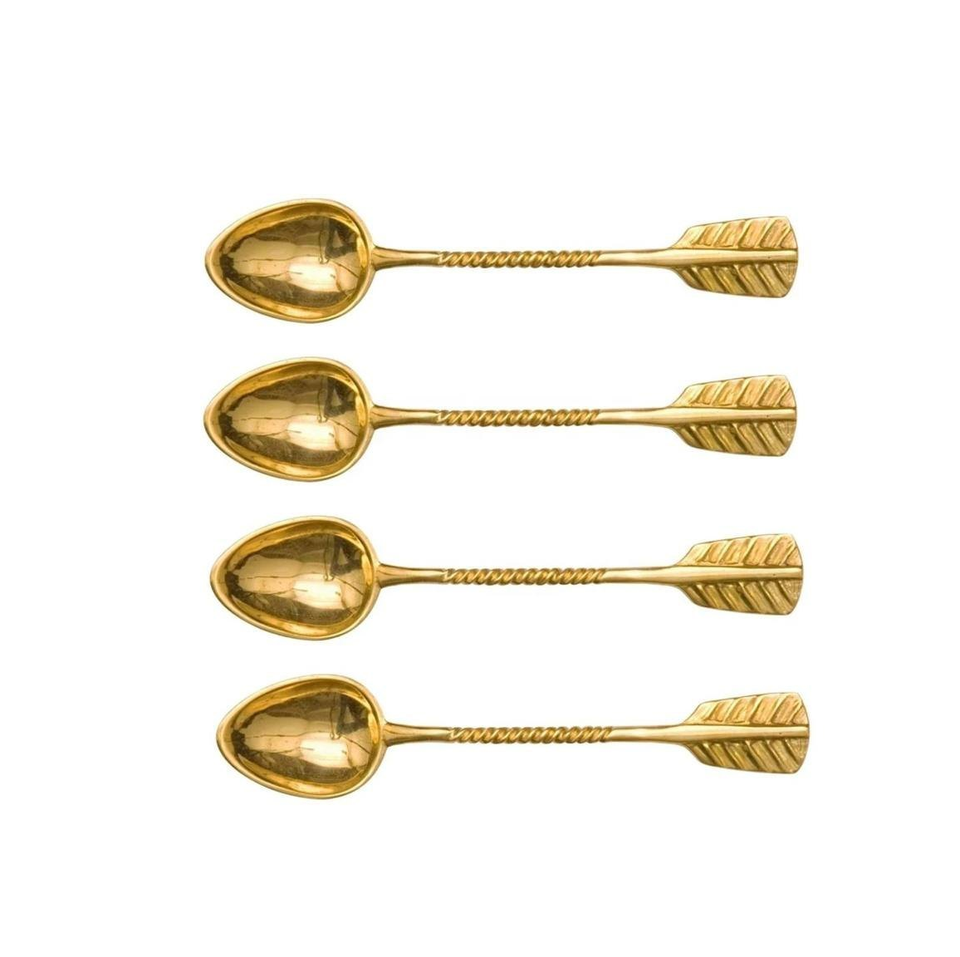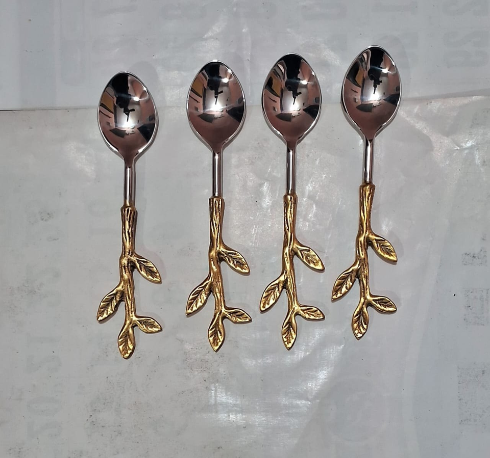 Elegant Different Leaf Design Cutlery Set Of Brass Gold Plated Brass Spoon Dessert Custom demanding