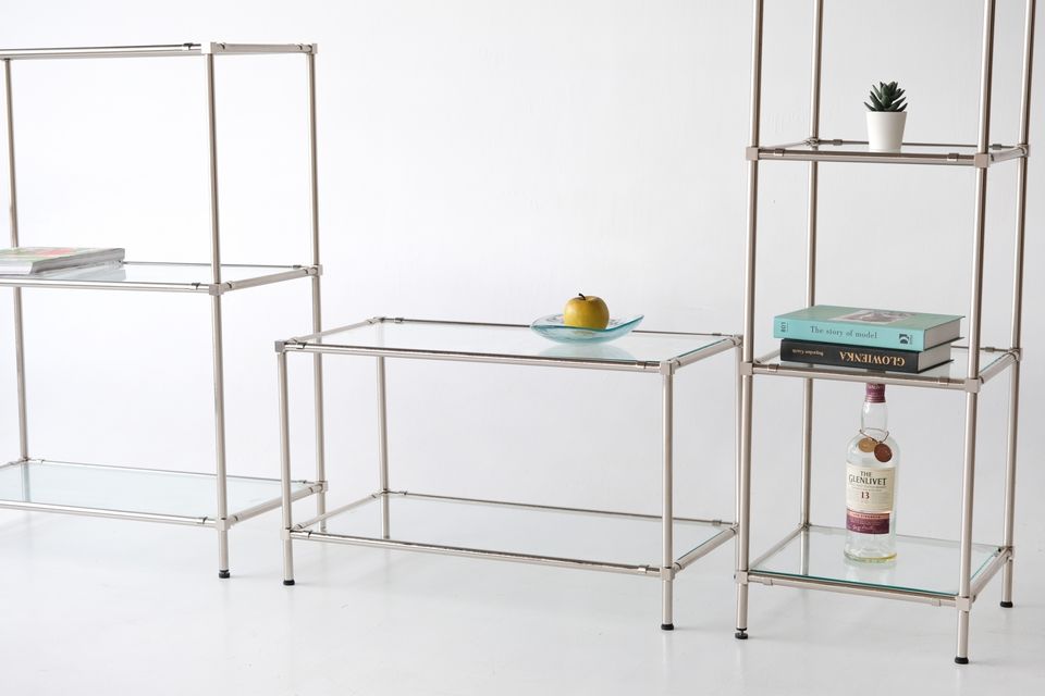 Elegant Double-Tier Glass Shelf Stand Furniture for Bedroom