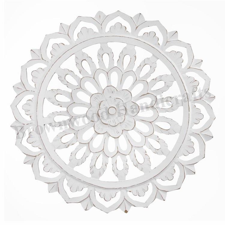Elegant Dual-Tone White and Grey Antique Handmade MDF Wood Hand Carved Round Wall Panel for Exquisite Home and Office Decor
