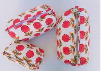 Elegant Eco Friendly Jaipur Artisan-Designed Zipper for Bag Cases Hand Block Printed Organic Cotton Waterproof PVC Lining