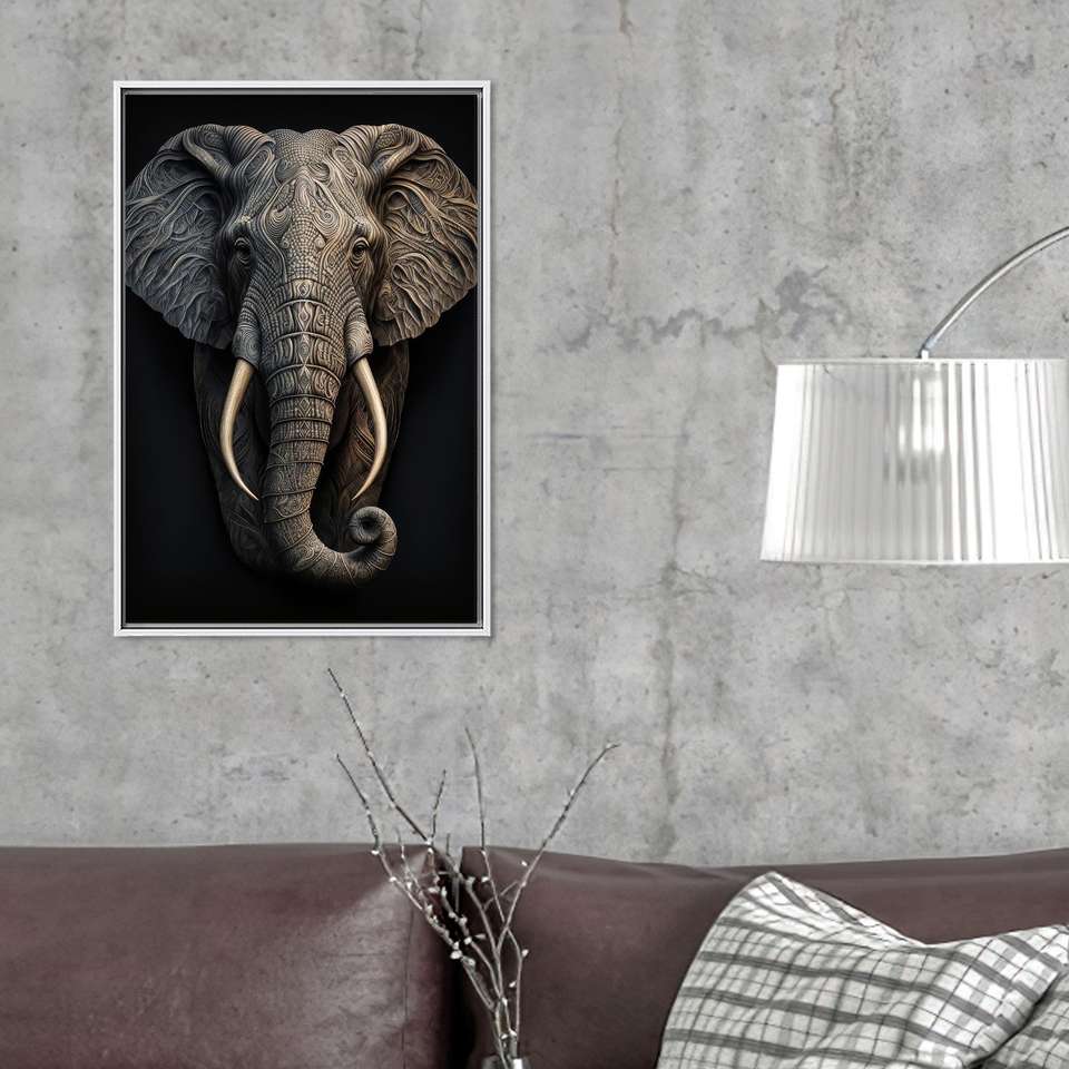 Elegant Elephant Canvas Art Print: Modern Room Decor & Minimalist Wall Art,White Framed