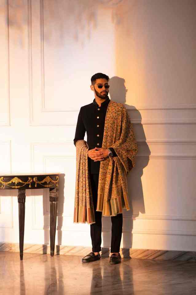 Elegant Embroidered Pashmina Wool Shawl Luxury Soft Warm Breathable Traditional Handcrafted Solid Winter Wrap for Styling