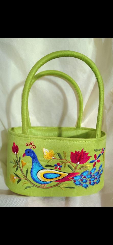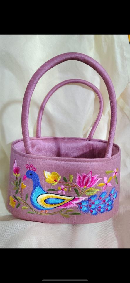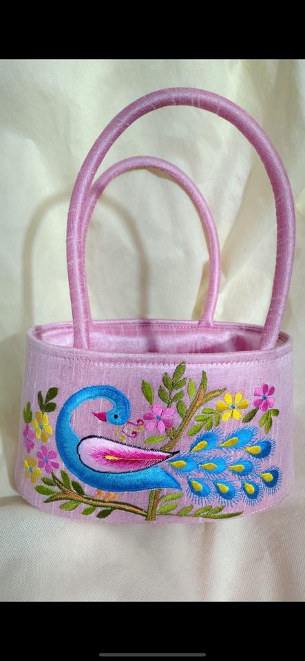 Elegant Embroidered Peacock Handbag with Floral Design Traditional Indian Potli Style Gift Bag Festive Return Gift Basket