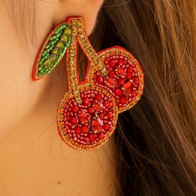 Elegant Embroidery Hook Earrings with colored Beads earrings Women Festive Party Jewelry At Best Price Beaded Earrings