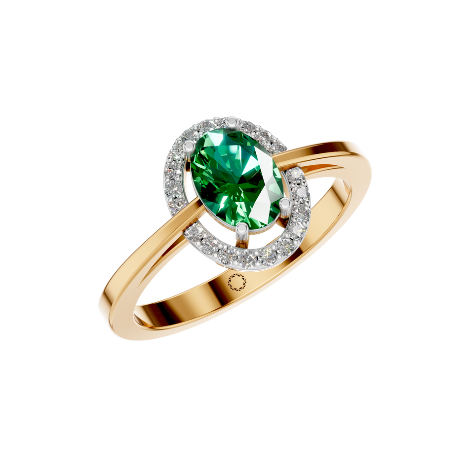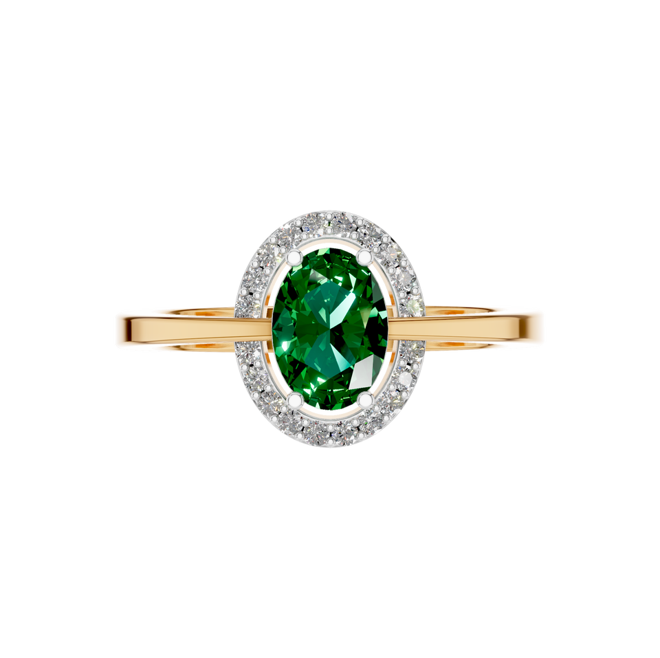 Elegant Oval Shaped Emerald Gemstone Ring with Diamond Halo