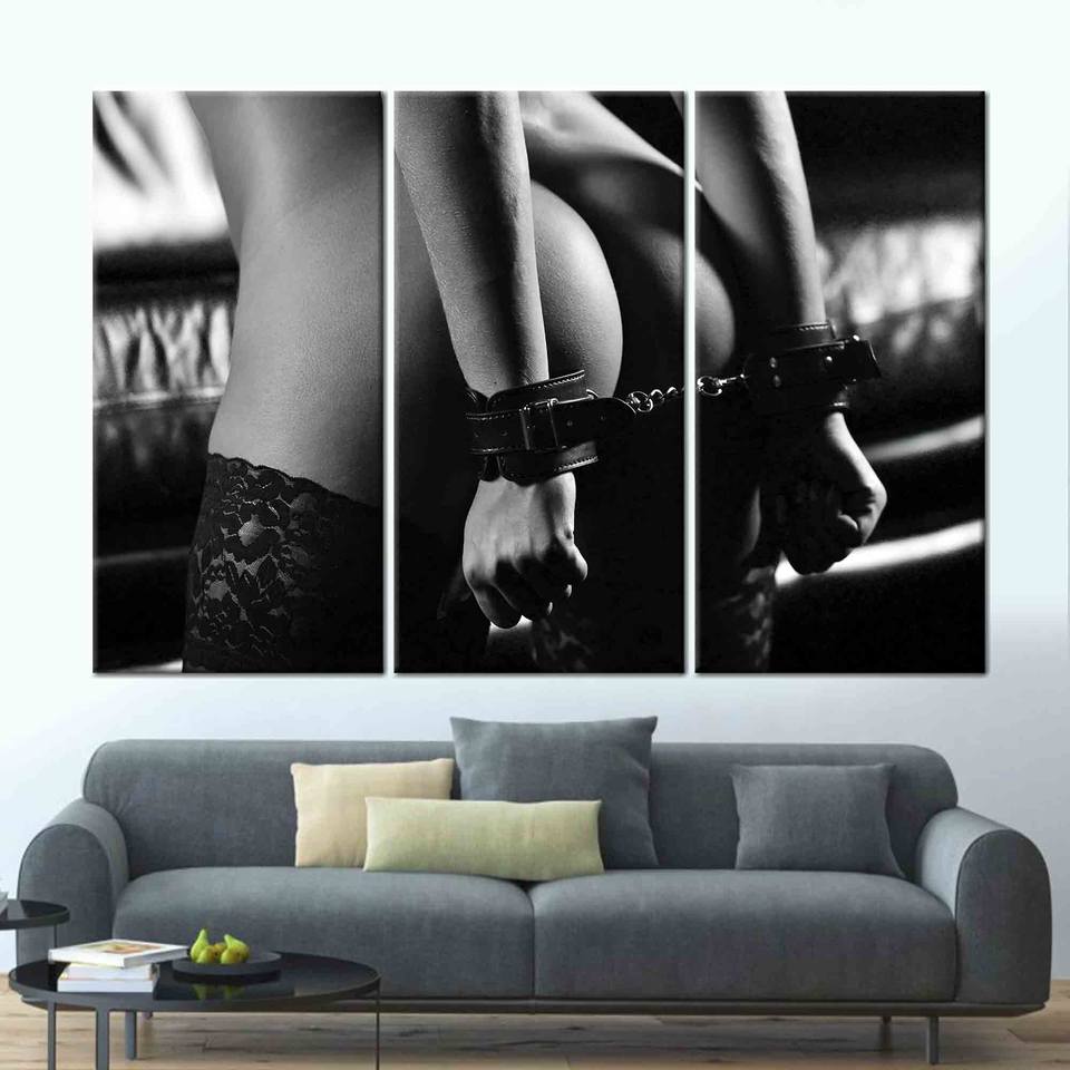 Elegant Erotic Woman Canvas Print, Sensual Nude Wall Art Decor,3P:Gallery Wrapped