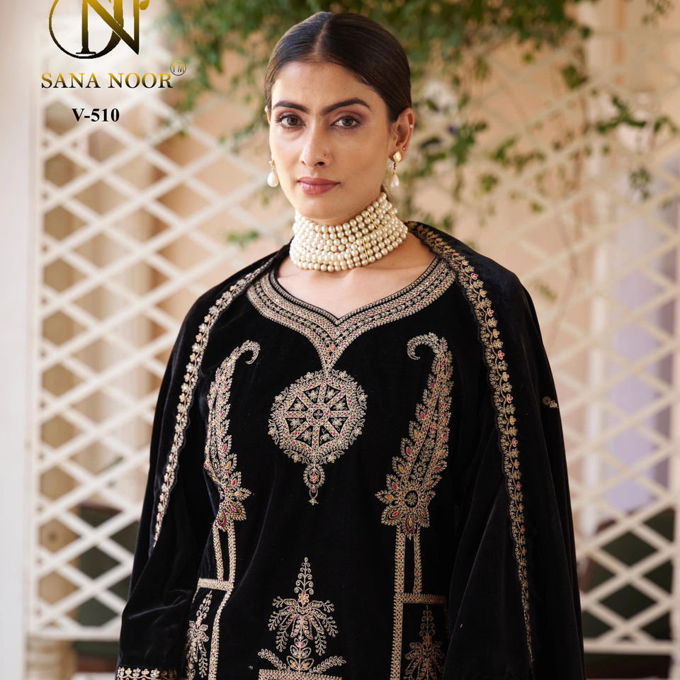 Elegant Ethnic Velvet Kurti with Embellished Dupatta & Pants for Women Effortless Glamour & Rich Style