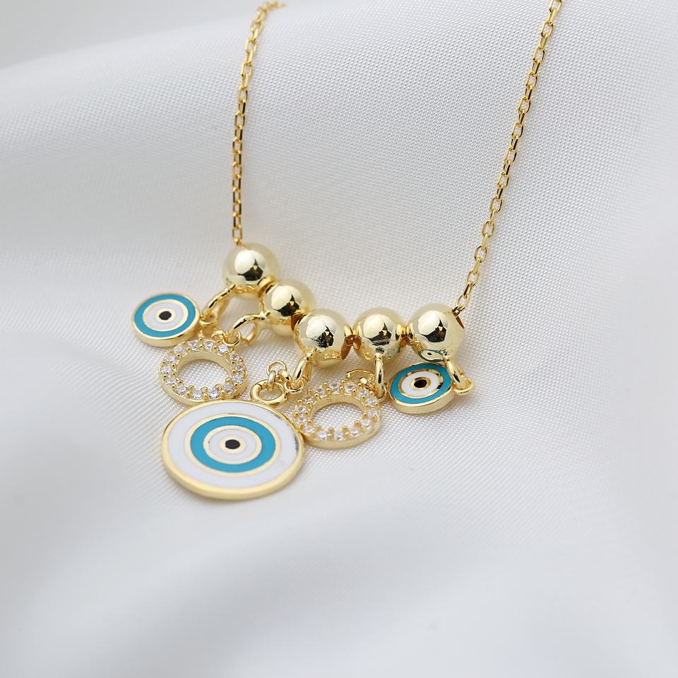 Elegant Eye Design Beaded Shaker Charm Necklace Wholesale Handmade 925 Sterling Silver Jewelry