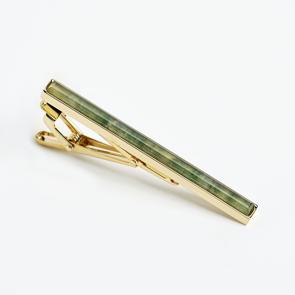 Elegant Faceted Green Agate Feng Shui Gemstone 18K Gold-Plated Men's Tie Bar – KCVDAXLG003 | Tinh Vu Collection | Vietnam