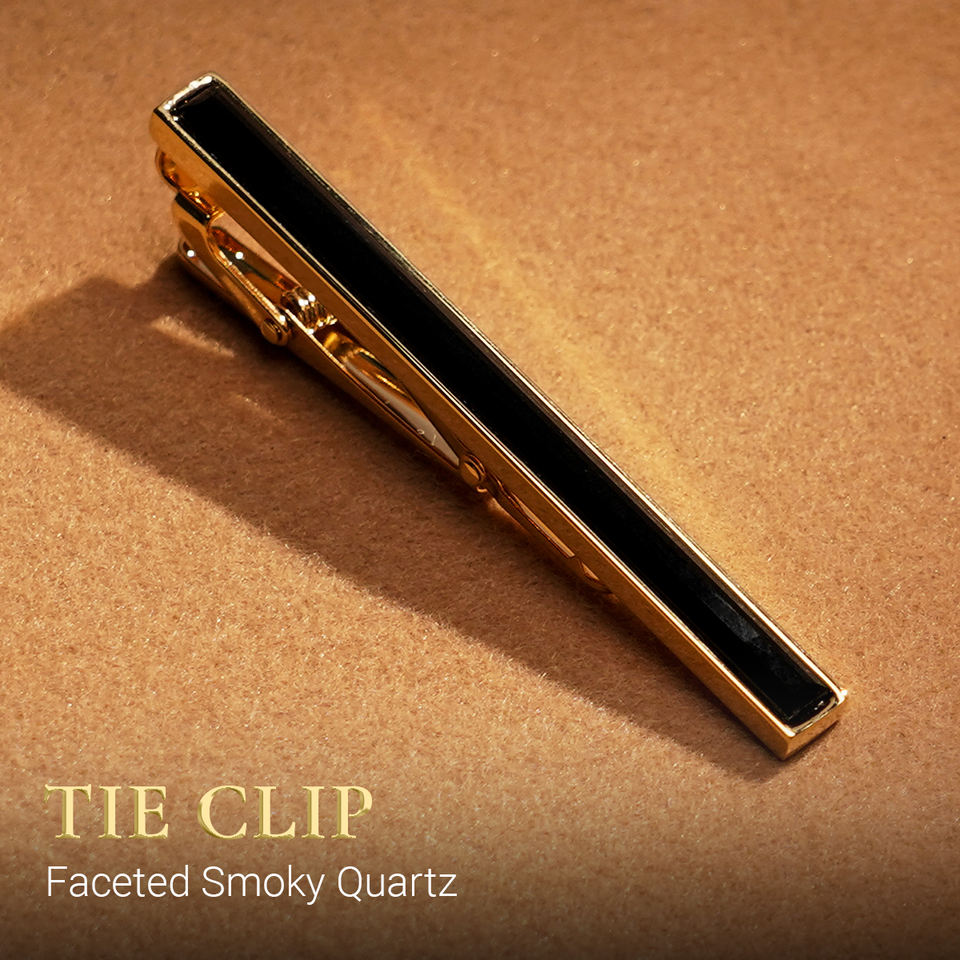 Elegant Faceted Smoky Quartz Feng Shui Gemstone 18K Gold-Plated Men's Tie Bar – KCVDADEG003 | Tinh Vu Collection | Vietnam