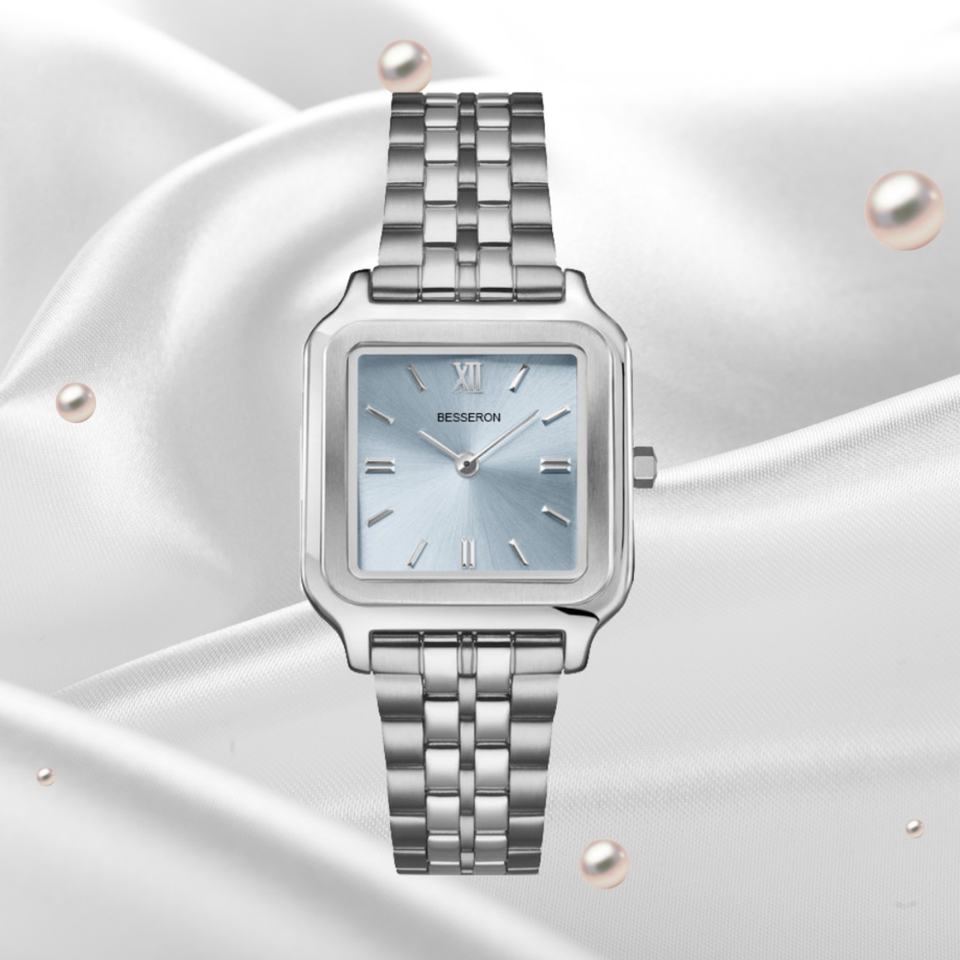 Elegant Fashion Lady Watch Sky Blue Dial Square Lady's Watch Silver Stainless Steel 3ATM Waterproof Custom Quartz Watches
