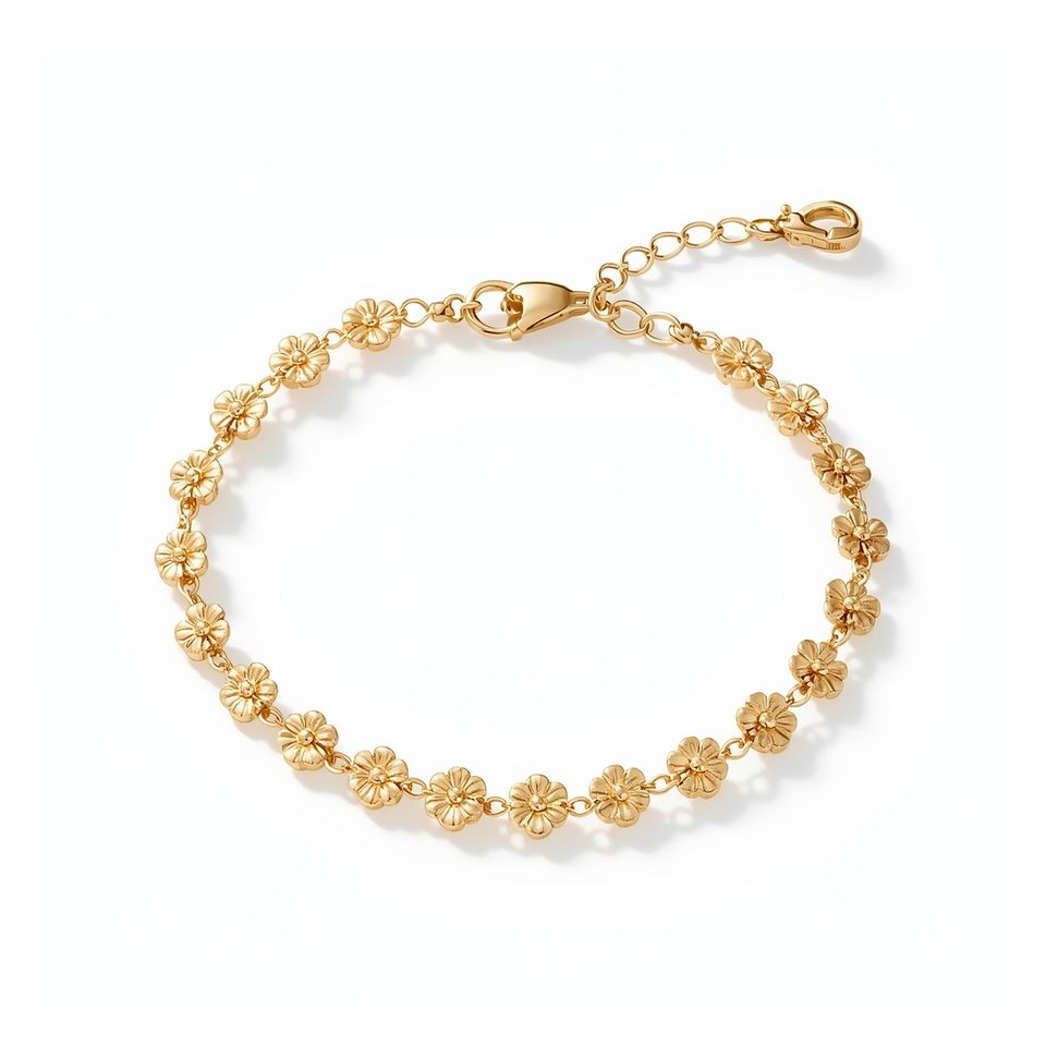 Elegant Floral Bar Link Bracelet Solid 9K Gold Minimal Chain Adjustable Women Jewelry GIA Certified Luxury OEM Factory
